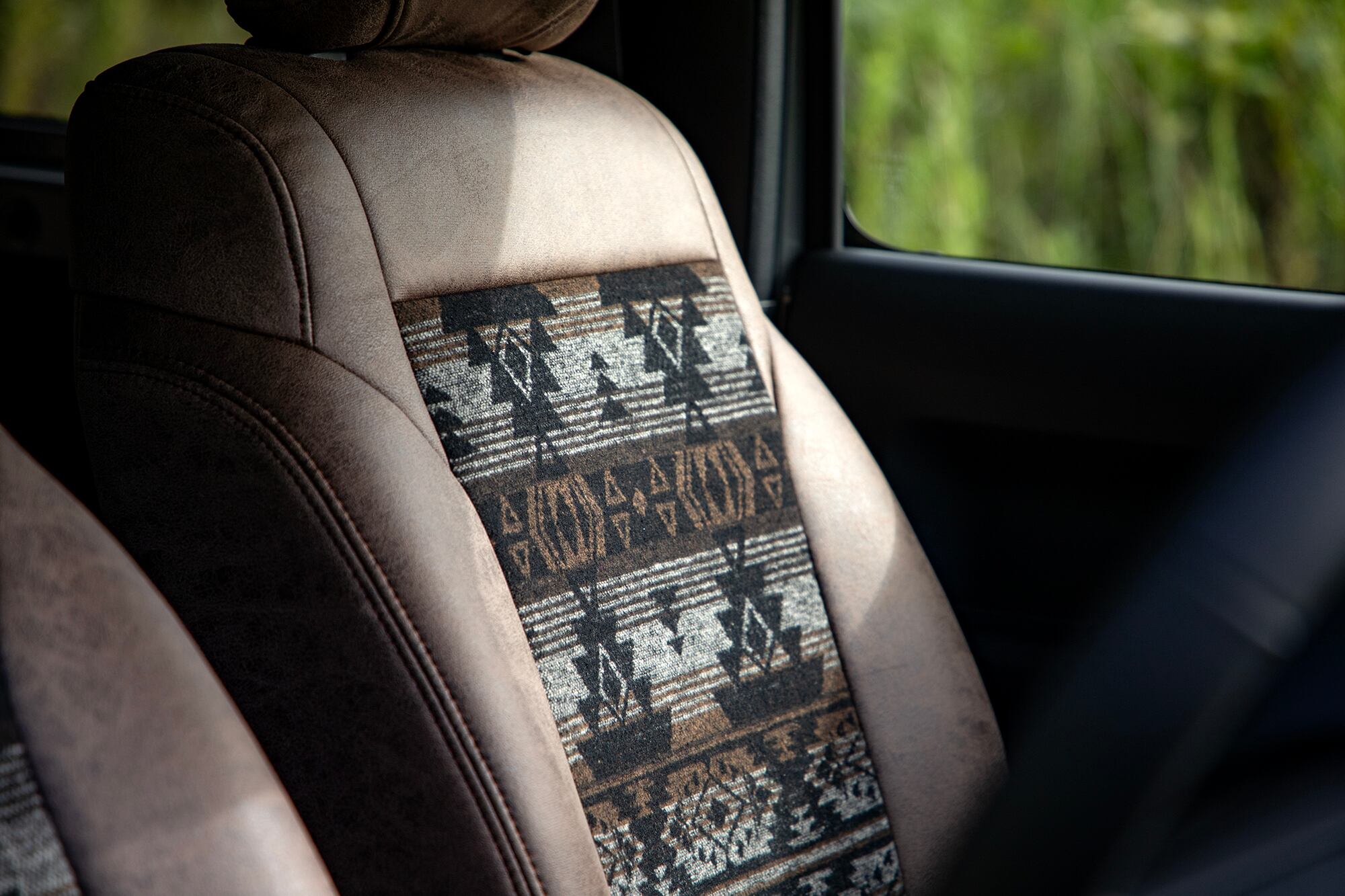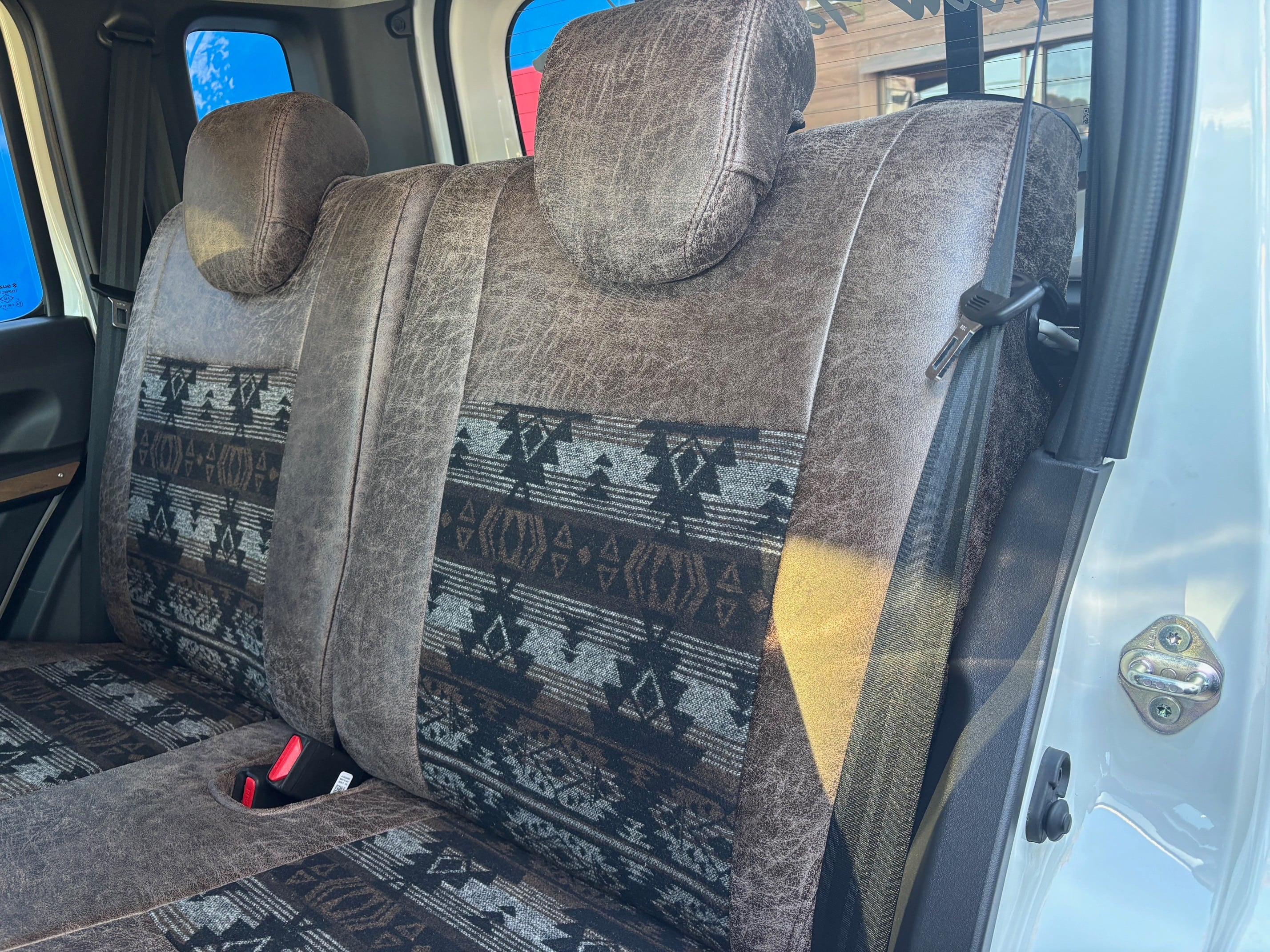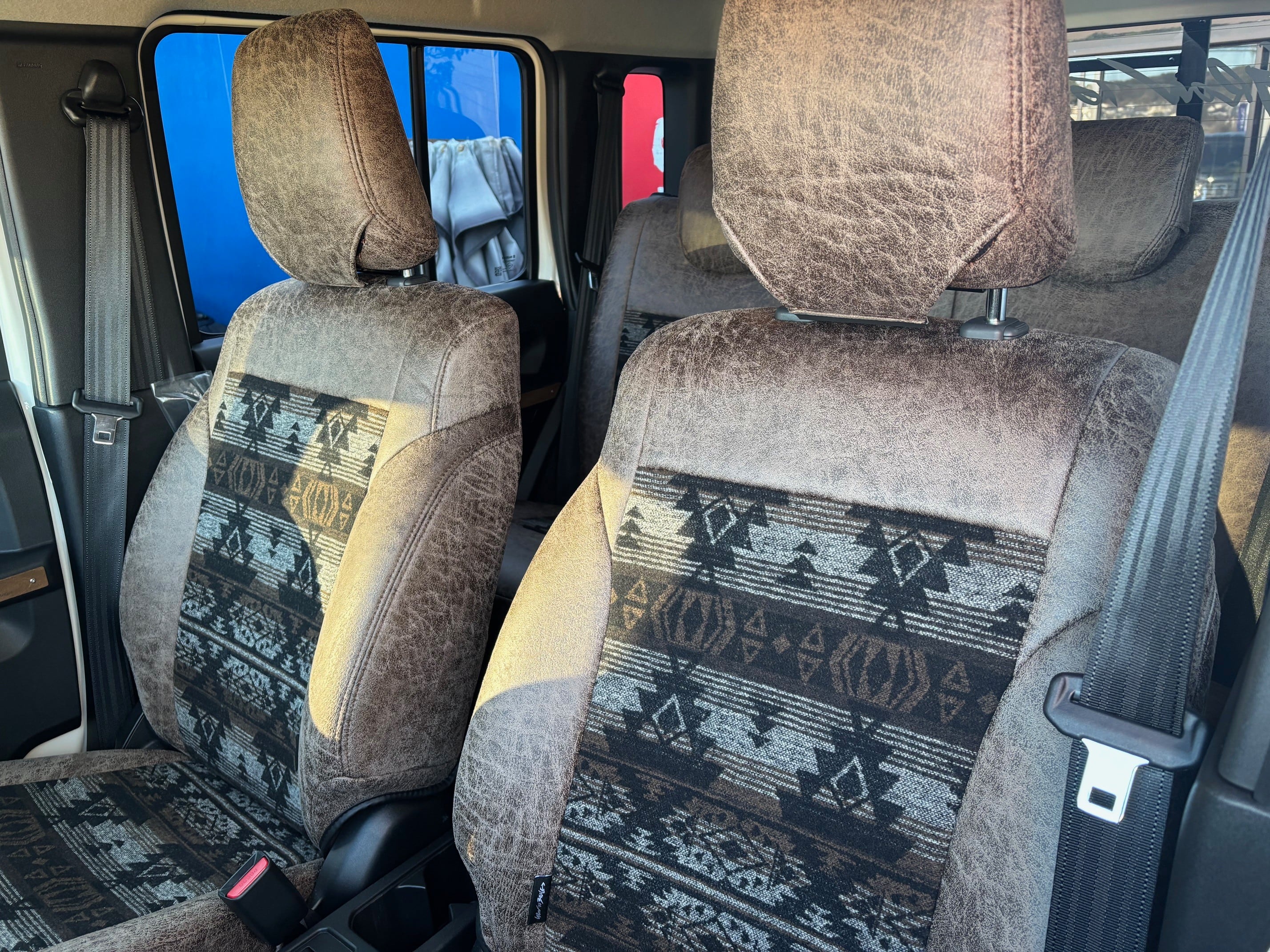 新素材『レザーグロウ』とネイティブアメリカン柄の生地を組み合わせたNEWシートカバー、あなたのジムニーをまた一段、成長させるアイテムが【Grow to Beecle】から新発売です!!